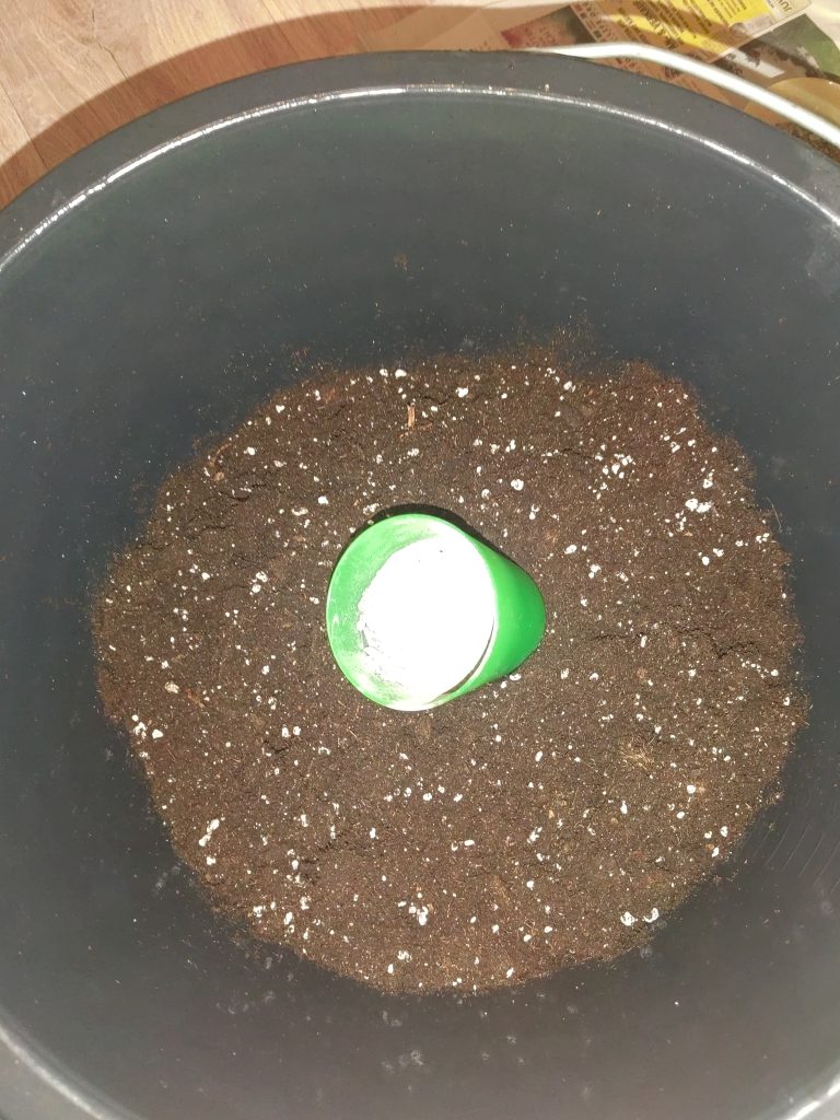 da ich die stecklinge wurzelnackt bekommen habe, lies ich sie erstmal eine woche in kleineren töpfen durchwurzeln und sich gleichzeitig aklimatisieren. in dieser zeit konnte die mischung mit dem erthvibes super soil schoeinmal fermentieren.