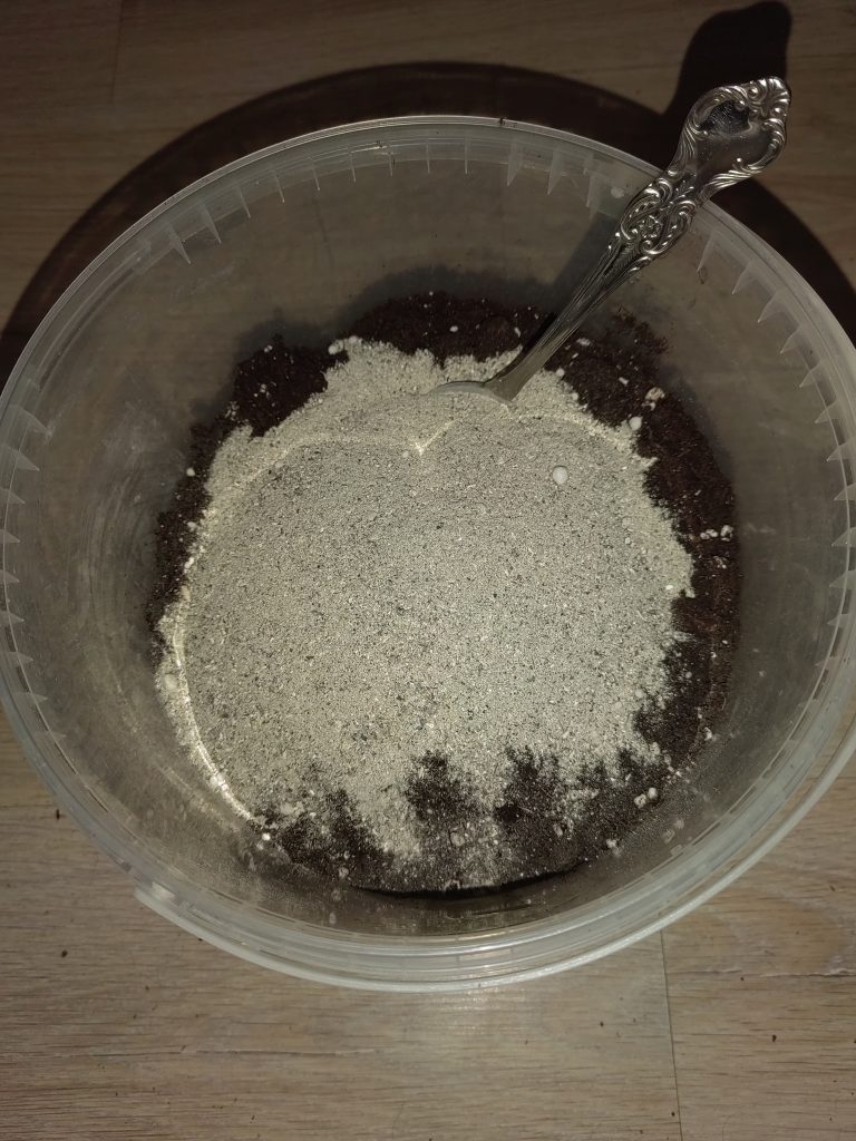 pro Liter Substrat habe ich es gleichmäßig in die oberste Schicht